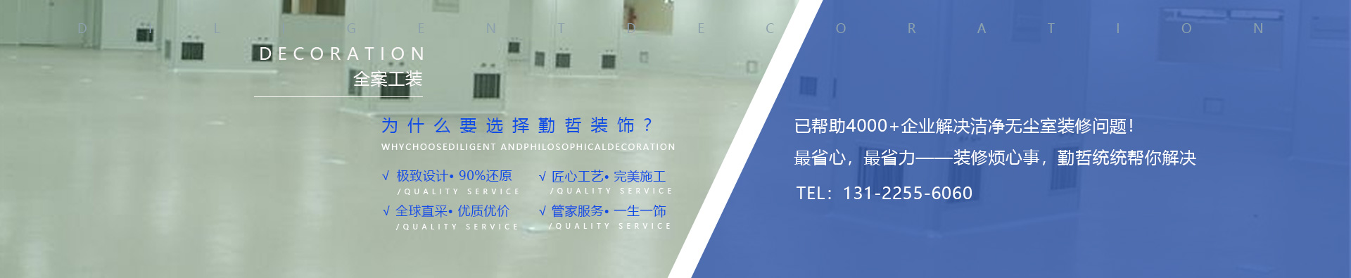 后期服務保障,免去裝修的所有后顧之憂讓您放心更省心;用品質說話,超長售后,為每一個項目提供高效優質服務,上海潔凈車間裝修信賴于勤哲裝飾。